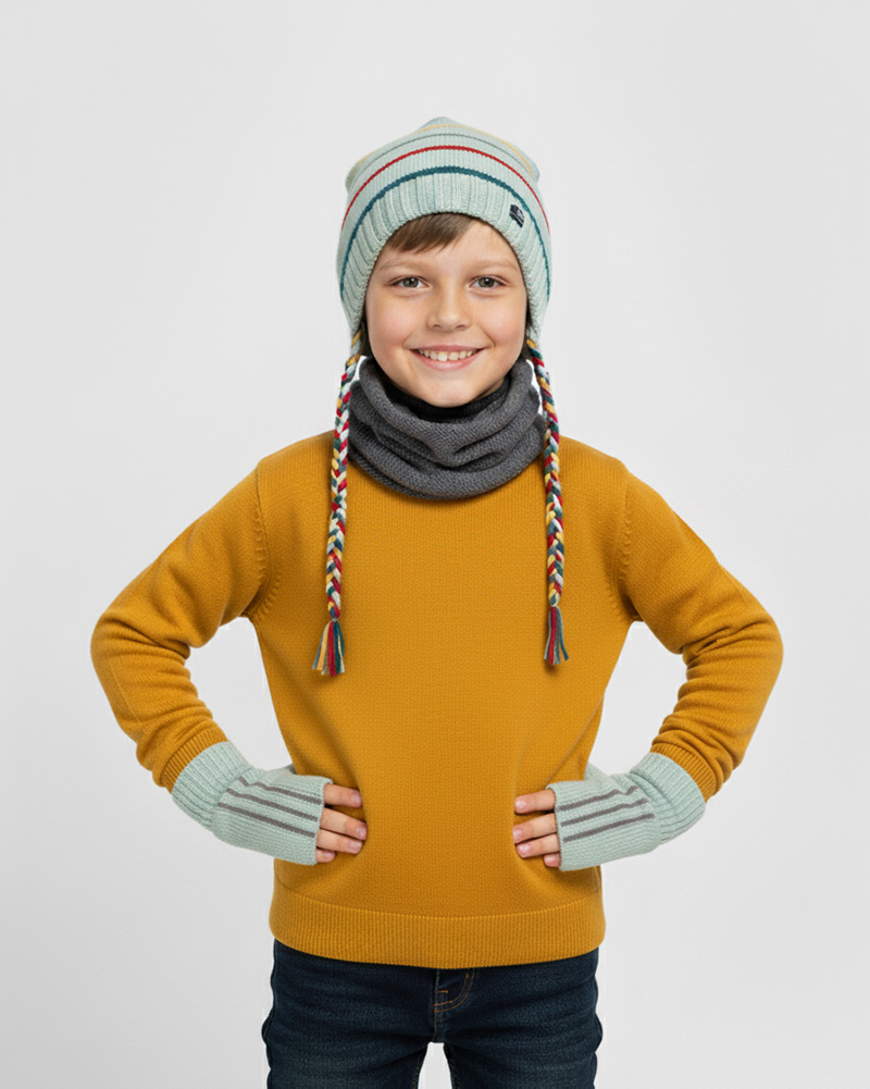 ست شال و کلاه و دستکش بچگانه 65024 – سرمهای تیرهنمره 5.00 از 5