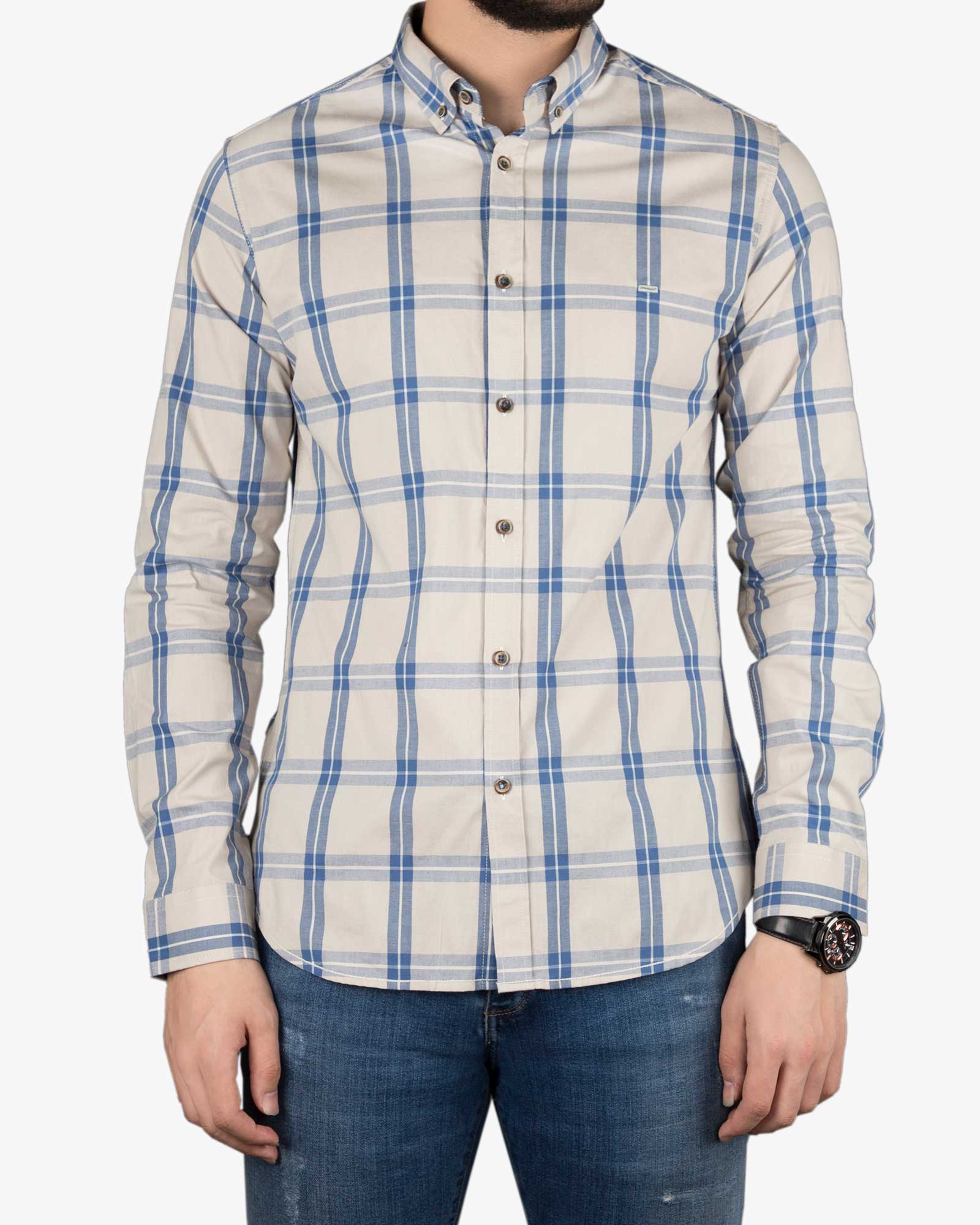 پیراهن آستین بلند چهارخانه مردانه (پوپلین) – سبزآبی روشن ناموجود