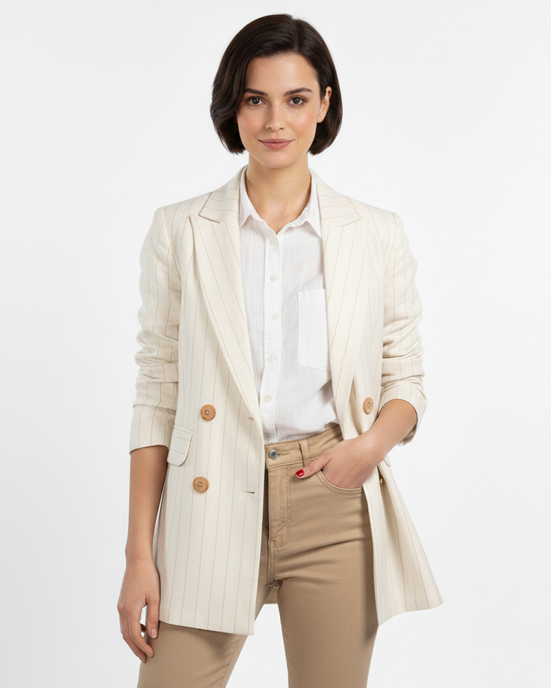 - کتان: برای کتهای اسپرت زنانه و تابستانی، کتان انتخابی عالی است. این پارچه طبیعی، خنک و با دوام است و ظاهری کژوال و شیک دارد.