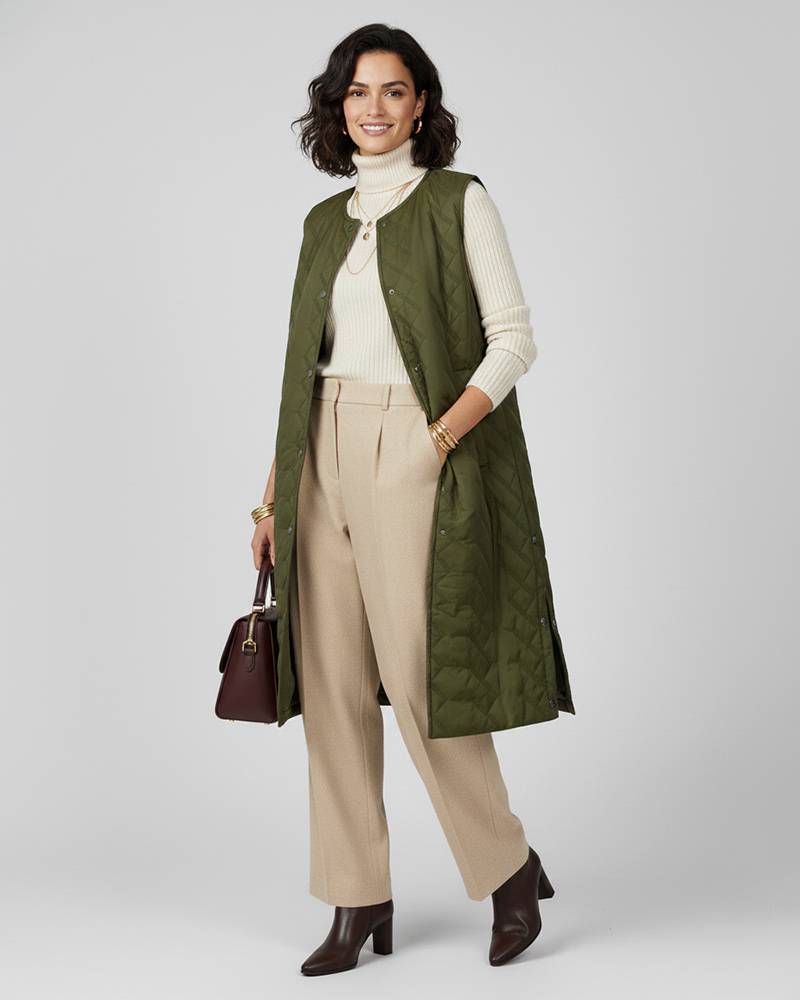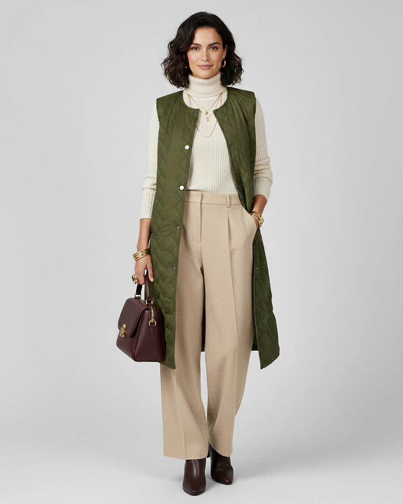 کاپشن پافر بلند زنانه 3042 – زیتونی سیر