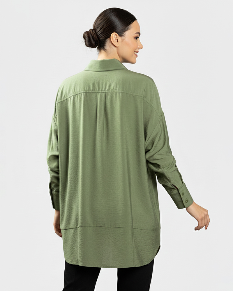 پیراهن زنانه و لباس مجلسی, شومیز، بلوز و تونیک زنانه, لباس زنانه, مانتو زنانه و رویه زنانه, محصولات زنانهشومیز زنانه ساده 332121 – زیتونى 1,438,000 تومان
