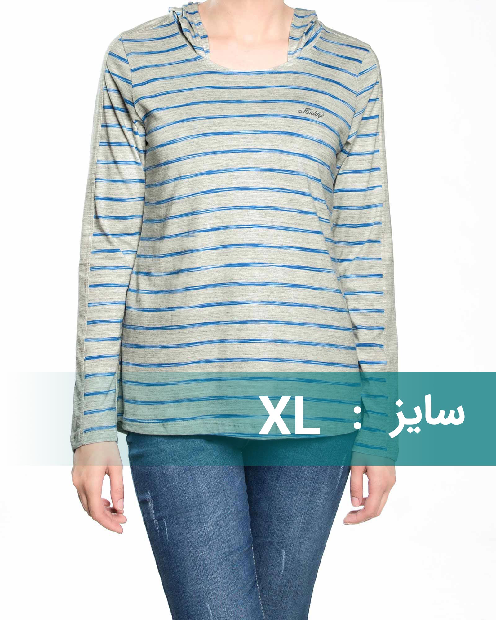 تیشرت و نیم تنه زنانه, شومیز، بلوز و تونیک زنانه, لباس زنانه, محصولات زنانه, هودی زنانه و سویشرت زنانههودی نازک زنانه – راه راه طوسی آبی ناموجود