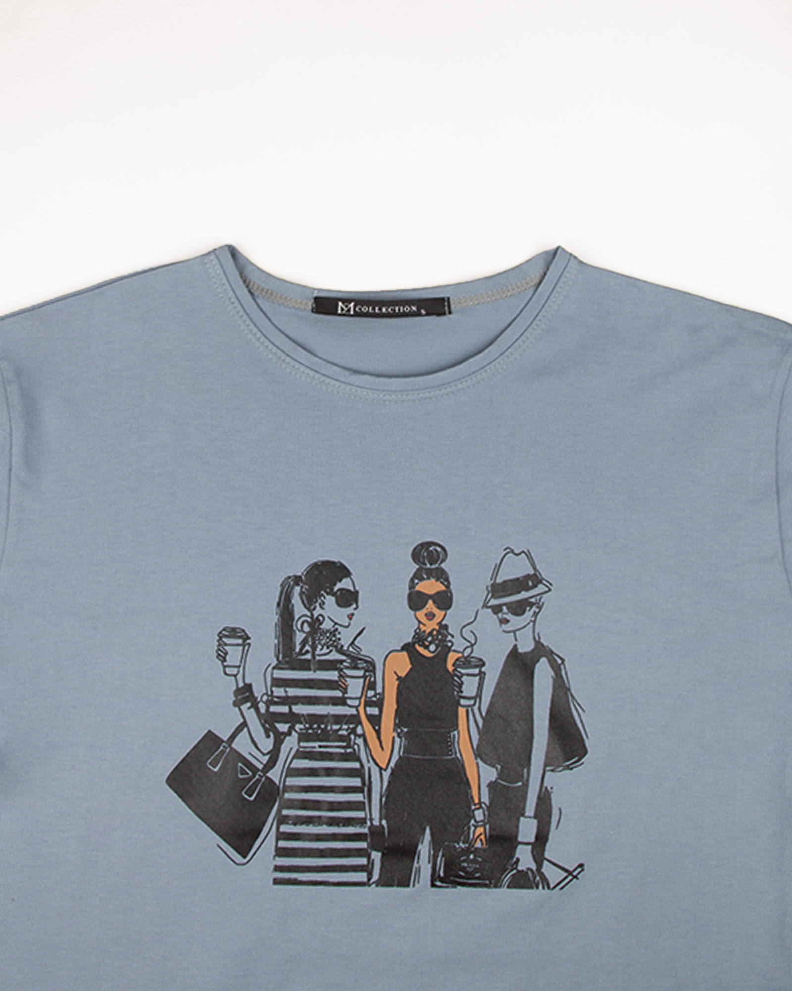 تیشرت طرح دار زنانه 1643 – سرمهای تیرهنمره 5.00 از 5